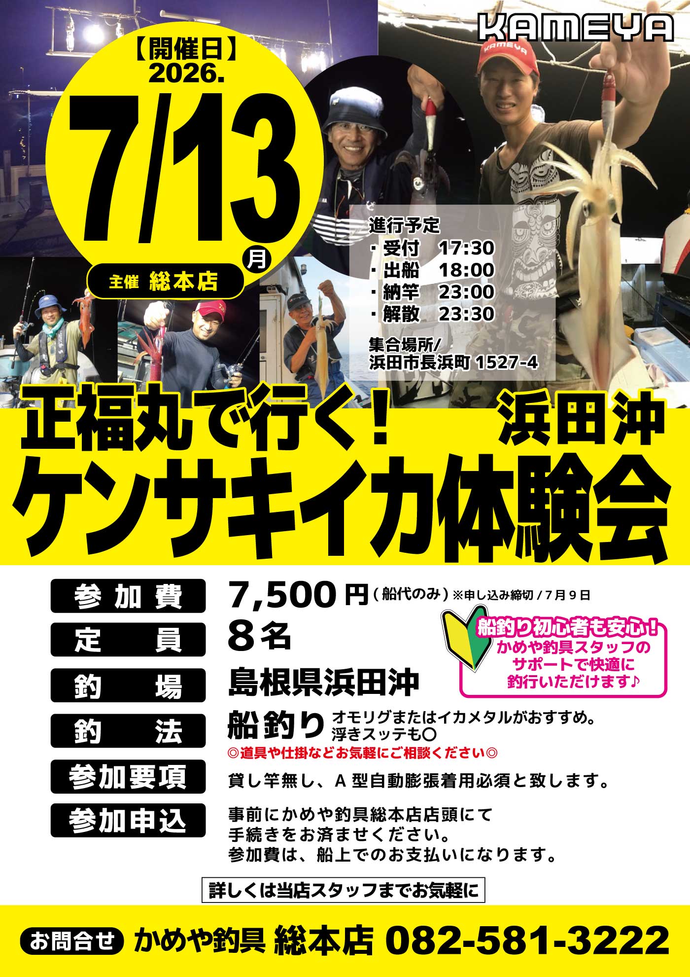 【総本店】正福丸で行く!ケンサキイカ体験会in浜田沖