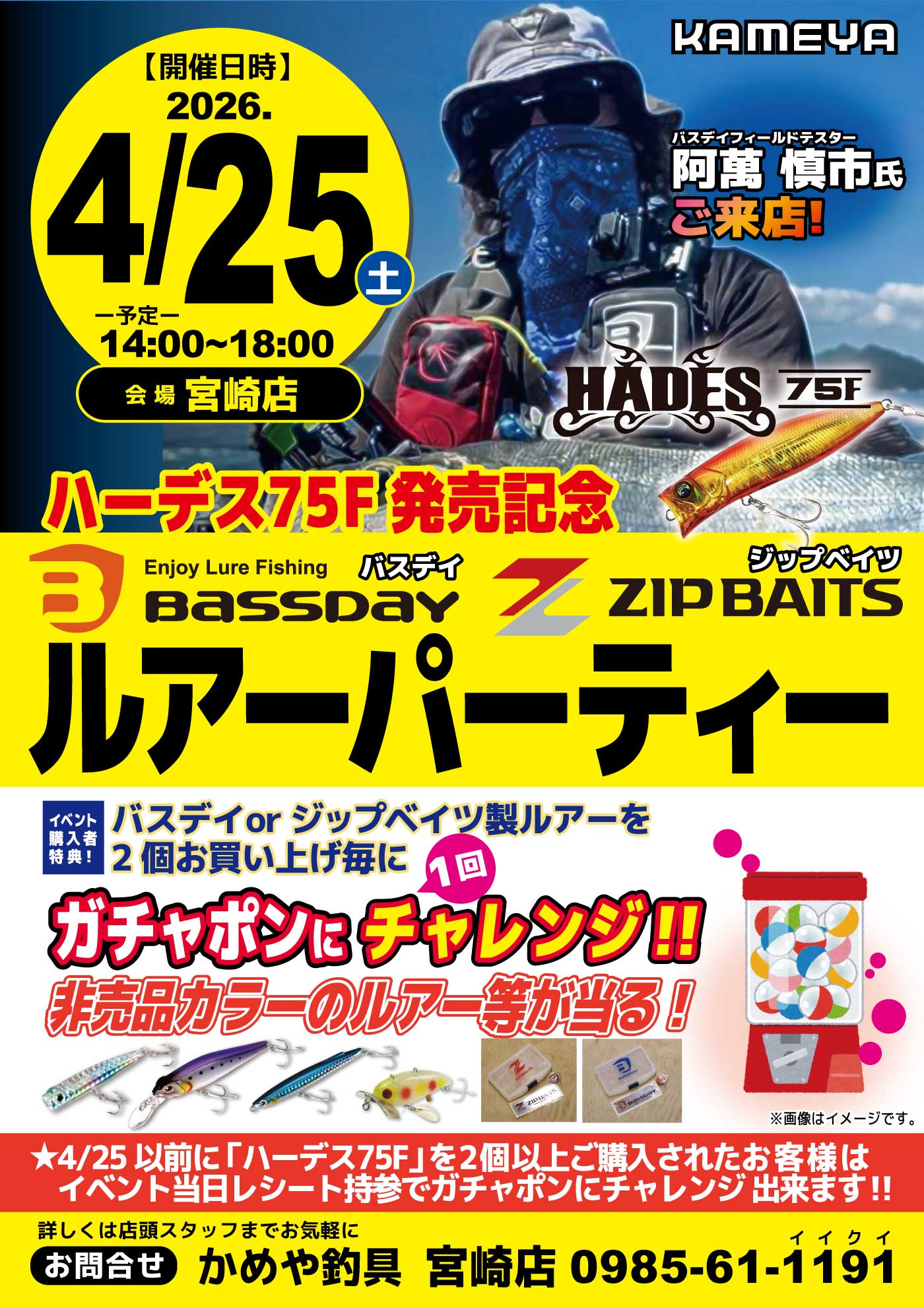 【宮崎店】ハーデス75F発売記念バスデイ・ジップベイツ ルアーパーティー
