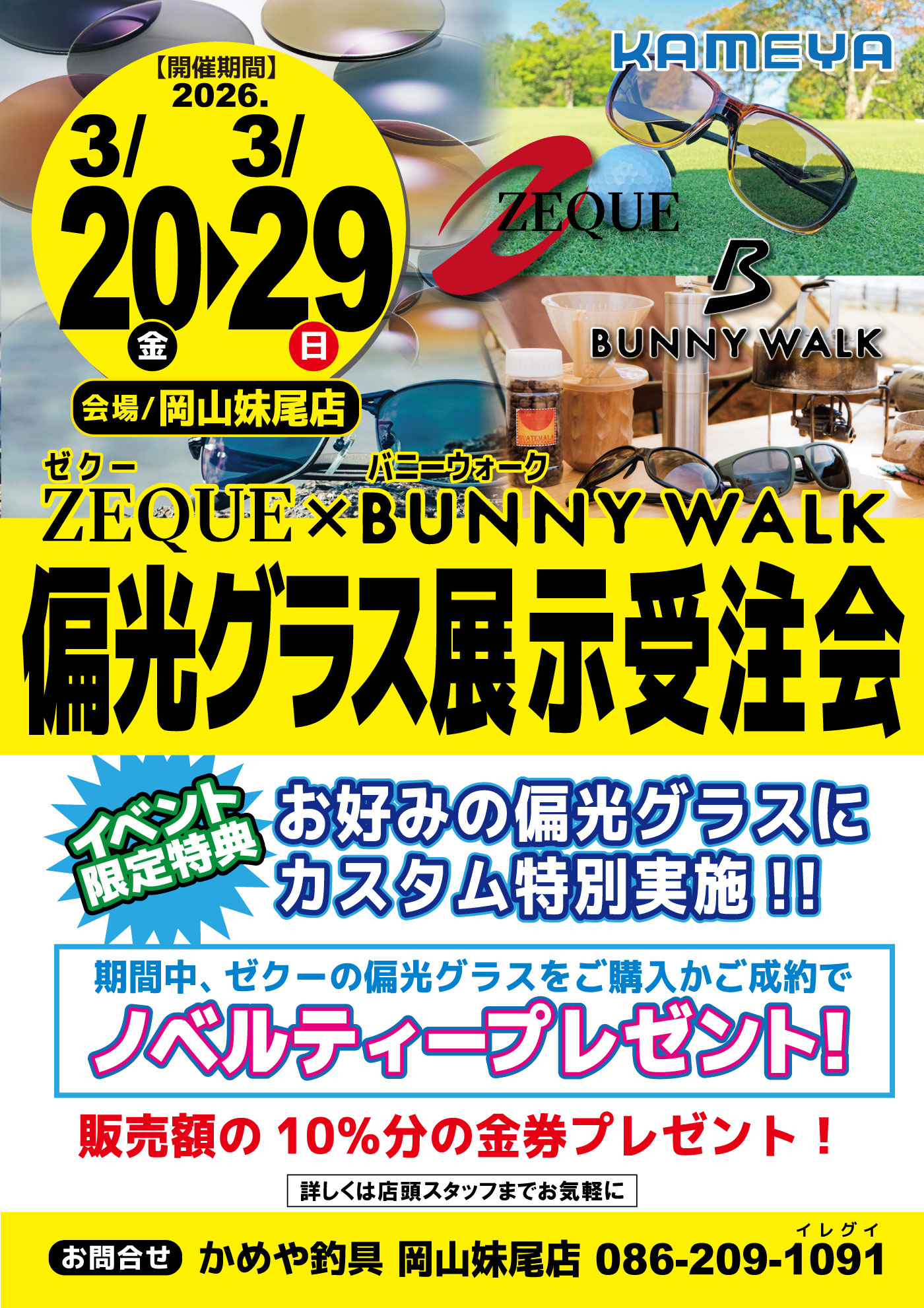 【岡山妹尾店】ゼクー×バニーウォーク偏光グラス展示受注会