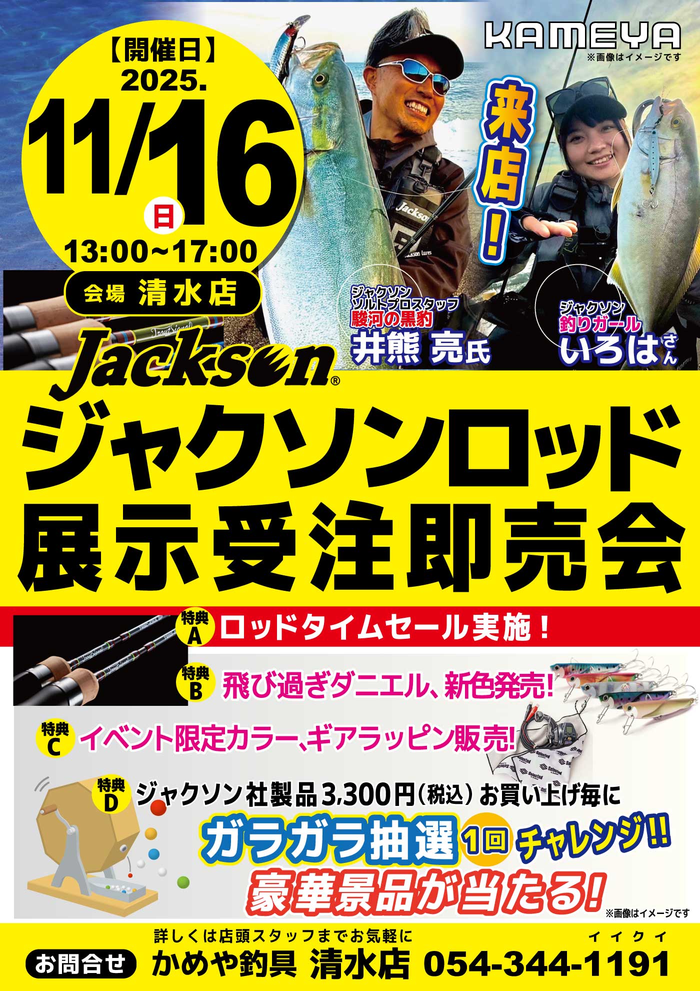 11月162025 【清水店】ジャクソンロッド展示受注即売会 イベント 開催期間 11月16日(日曜日)〜11月16日(日曜日) 開催場所 清水店 参加費 問い合わせ 清水店 TEL.054-344-1191