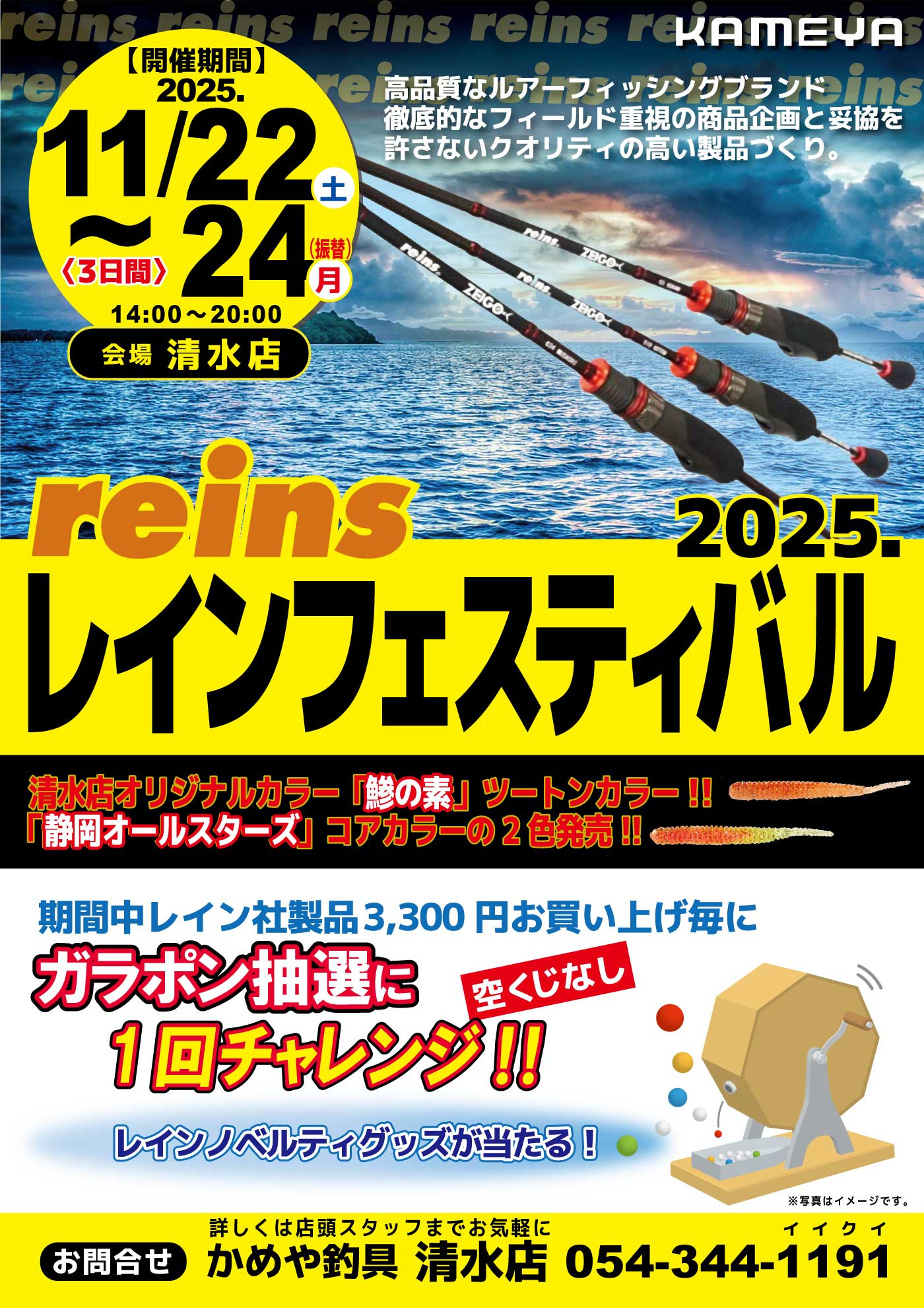 11月222025 【清水店】レイン フェスティバル2025 イベント 開催期間 11月22日(土曜日)〜11月24日(月曜日) 開催場所 清水店 参加費 問い合わせ 清水店 TEL.054-344-1191