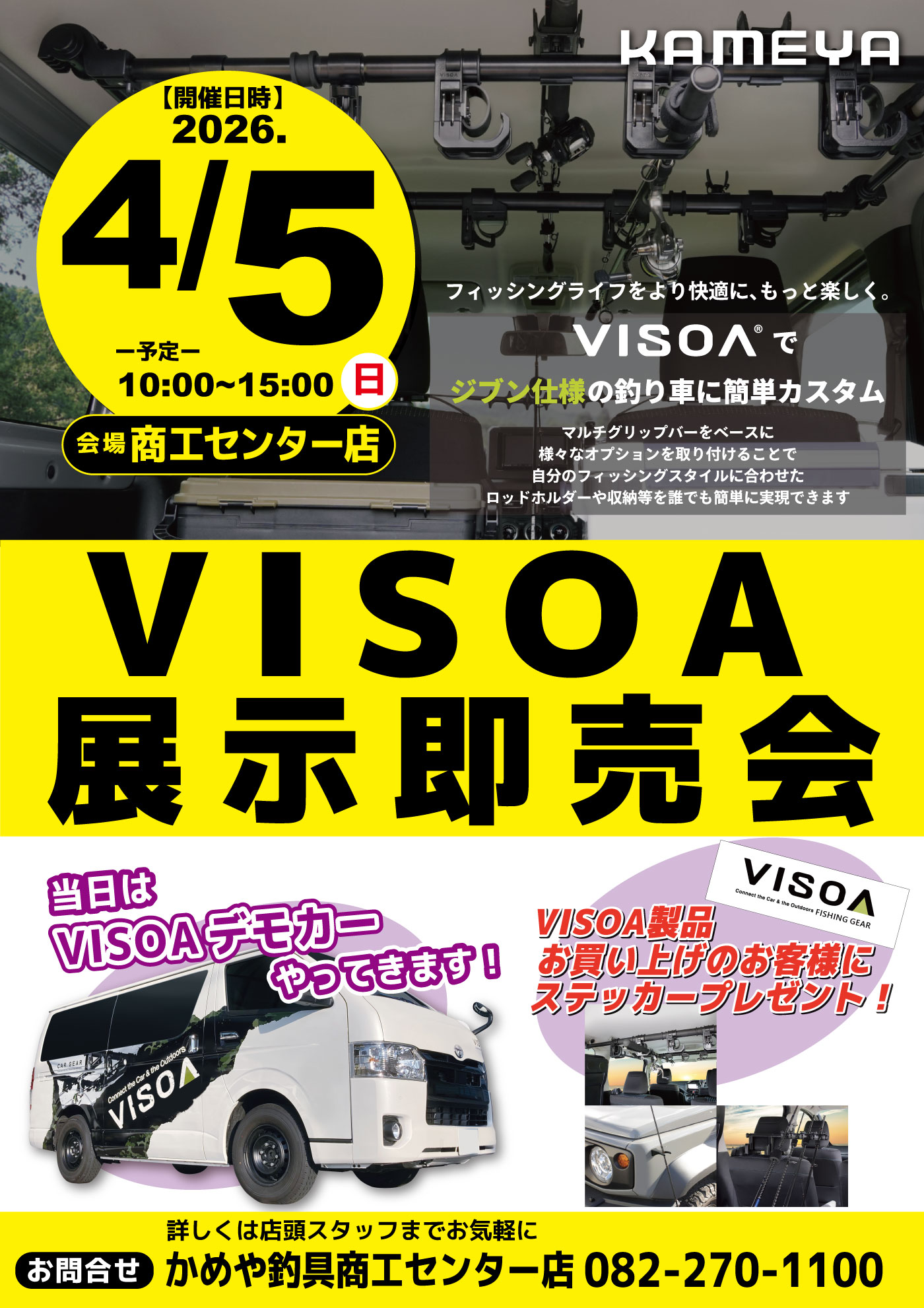 4月052026 【商工センター店】VISOA展示即売会 イベント 開催期間 4月5日(日曜日)10:00~15:00 開催場所 商工センター店 参加費 - 問い合わせ 商工センター店 TEL.082-270-1100