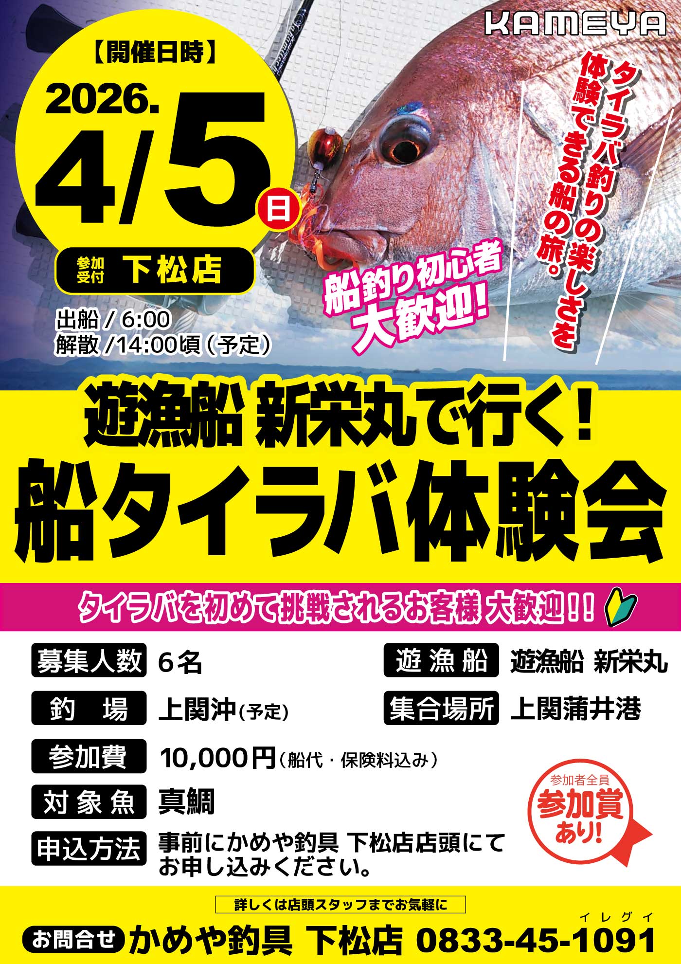【下松店】遊漁船新栄丸で行く!船タイラバ体験会
