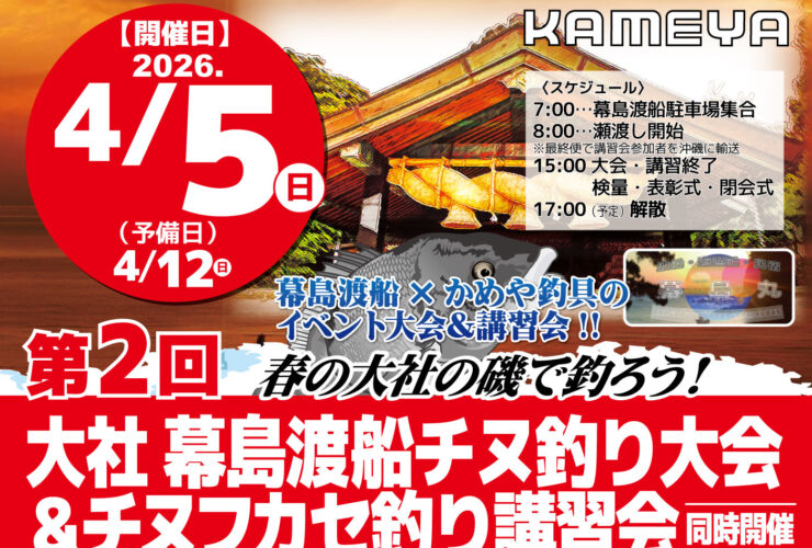 【出雲店】第2回 大社 幕島渡船チヌ釣り大会&チヌフカセ釣り講習会