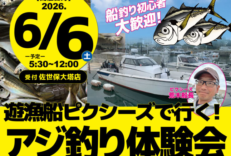 【佐世保大塔店】遊漁船ピクシーズで行く!アジ釣り体験会